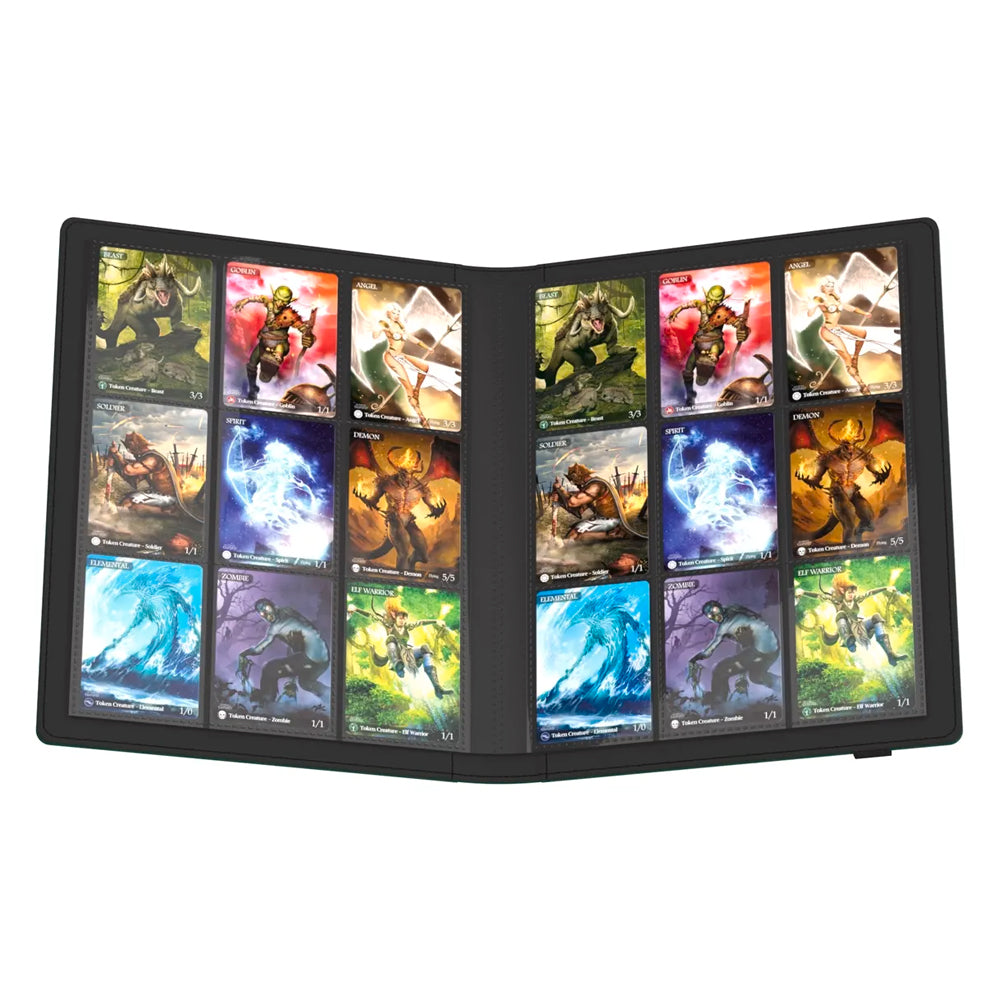 Portfolio de alta calidad con innovador material para cartas coleccionables de tamaño estándar y japonés con 20 páginas (unidas al álbum) de 18 compartimentos.