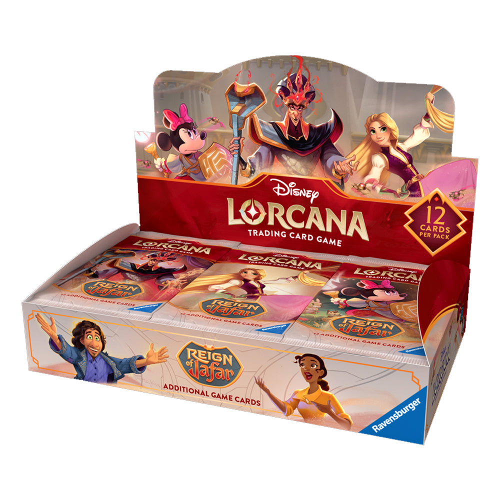Esta caja contiene 24 sobres de la expansión "Reign of Jafar" para el juego de cartas coleccionables Lorcana TCG en inglés. Cada sobre ofrece una selección de cartas únicas que amplían las estrategias y posibilidades de juego, ideales para coleccionistas y jugadores avanzados que buscan fortalecer su mazo con nuevas habilidades y personajes. Perfecto para quienes desean explorar y dominar las novedades de esta edición.
