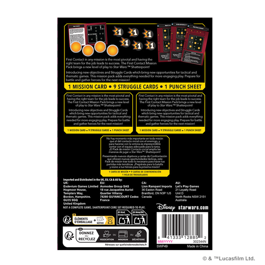 No hay momento más importante en toda misión que el del contacto inicial con el enemigo, y para hacerse con la victoria es imprescindible contar con el equipo adecuado para la tarea. ¡El Pack de misión Contacto inicial amplía las maneras de jugar a Star WarsTM: Shatterpoint!