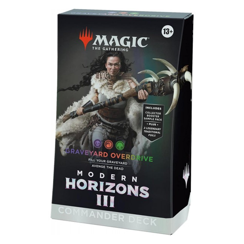 El mazo Commander Graveyard Overdrive de Modern Horizons 3 para Magic: The Gathering, en inglés, está diseñado para jugadores expertos que buscan maximizar el potencial del cementerio. Este mazo aprovecha sinergias avanzadas y estrategias de reanimación para controlar la partida y obtener ventaja constante. Ideal para dominar el formato Commander con tácticas sofisticadas y cartas clave que potencian el juego desde el cementerio.
