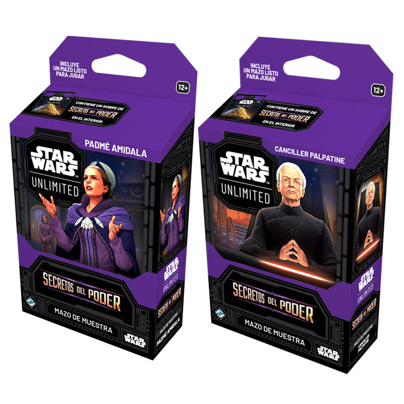 ¡Conspira en la sombra y planea tu victoria definitiva con el Canciller Palpatine en este Mazo de muestra! Dentro de esta caja encontrarás una carta de líder del Canciller Palpatine y un mazo de 50 cartas listo para empezar a jugar sacando el máximo partido de sus puntos fuertes. El mazo contiene cartas de múltiples colecciones, incluidos conjuntos enteros de 4 cartas de rareza especial, así como indicadores de daño, fichas y un sobre de ampliación de Secretos del poder con el que podrás aumentar tu colección.